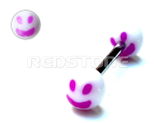 Piercing z chirurgickej ocele v kombinácii s bioplastom, piercing do jazyka. Priemer bioplastovej guličky: 6 mm, Hrúbka tyčky: 1,6 mm, Dĺžka tyčky: 16 mm.