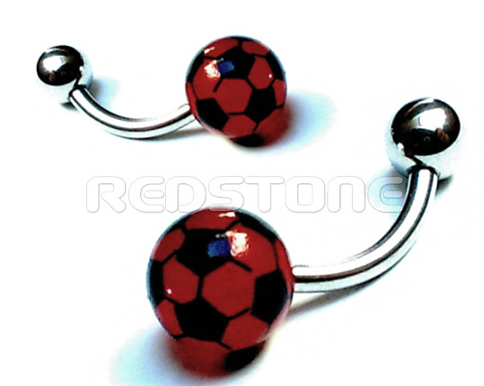 Piercing z chirurgickej ocele v kombinácii s bioplastom, piercing do pupka. Rozmer: 8 x 23 mm, Hrúbka tyčky: 1,6 mm, Priemer vačšej guličky: 8 mm, Priemer menšej guličky: 5 mm.