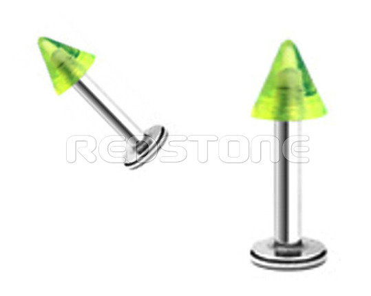 Piercing z chirurgickej ocele v kombinácii s bioplastom , piercing do brady. Rozmer: 4 x 15 mm, Šírka tyčky: 1,2 mm, šírka špicu: 4 mm.