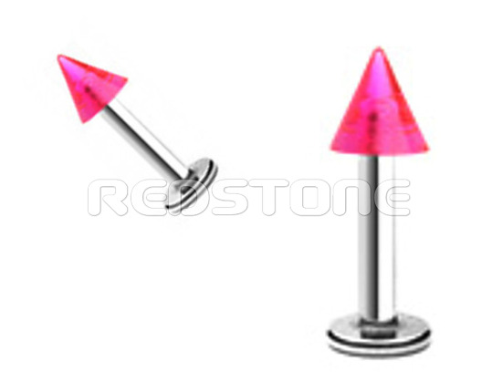 Piercing z chirurgickej ocele v kombinácii s bioplastom , piercing do brady. Rozmer: 4 x 15 mm, Šírka tyčky: 1,2 mm, šírka špicu: 4 mm.