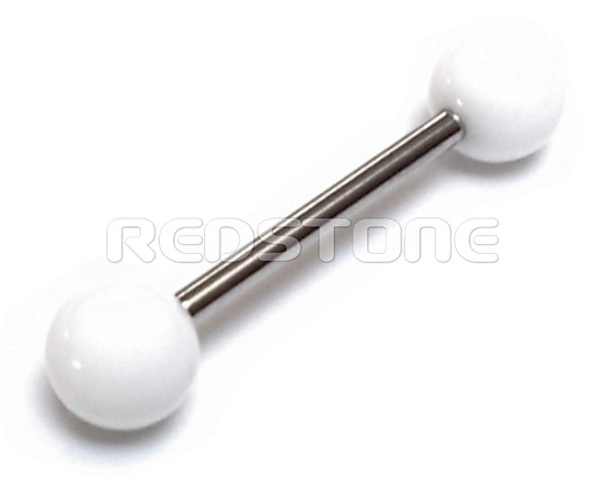 Piercing z chirurgickej ocele v kombinácii s UV bioplastom, piercing do jazyka. Priemer bioplastovej guličky: 6 mm, Hrúbka tyčky: 1,6 mm, Dĺžka tyčky: 16 mm.