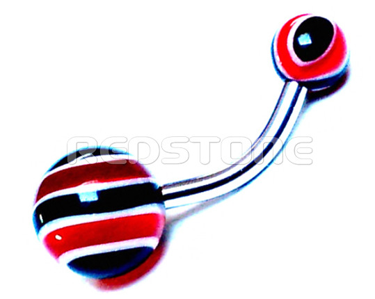 Piercing z chirurgickej ocele v kombinácii s UV bioplastom, piercing do pupka. Rozmer: 8 x 23 mm, Priemer vačšej guličky: 8 mm, priemer menšej guličky: 5 mm, šírka tyčky: 1,2 mm