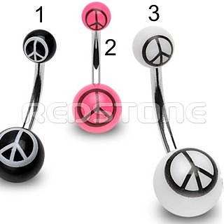 Piercing z chirurgickej ocele v kombinácii s UV bioplastom, piercing do pupka. Rozmer: 8 x 23 mm, Priemer vačšej guličky: 8 mm, priemer menšej guličky: 5 mm, šírka tyčky: 1,2 mm