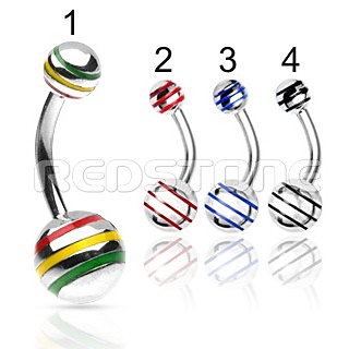 Piercing z chirurgickej ocele, piercing do pupka. Rozmer: 8 x 23 mm, Priemer vačšej guličky: 8 mm, priemer menšej guličky: 5 mm, šírka tyčky: 1,2 mm