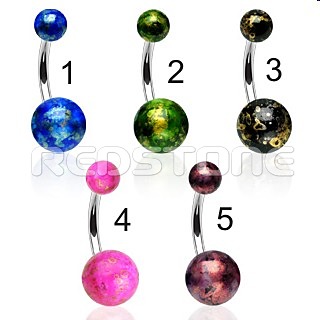Piercing z chirurgickej ocele v kombinácii s bioplastom, piercing do pupka. Rozmer: 8 x 23 mm, Priemer vačšej guličky: 8 mm, priemer menšej guličky: 5 mm, šírka tyčky: 1,2 mm