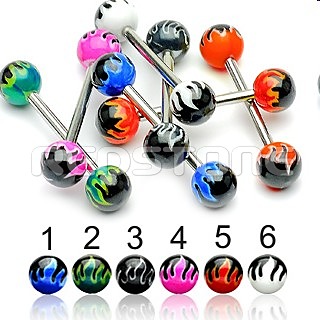 Piercing z chirurgickej ocele v kombinácii s UV bioplastom, piercing do jazyka. Priemer bioplastovej guličky: 6 mm, Hrúbka tyčky: 1,6 mm, Dĺžka tyčky: 16 mm.