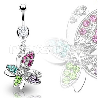 Piercing z chirurgickej ocele - banán, ostatné časti bižutéria. Rozmer: 20 x 40 mm. Hrúbka tyčky: 1,5 mm. Šperk z chirurgickej ocele v lesklom prevedení v kombinácii so zirkónmi. Piercing do pupka.