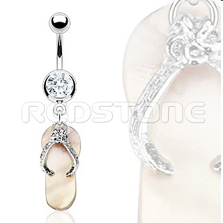 Piercing z chirurgickej ocele - banán, ostatné časti bižutéria. Rozmer: 11 x 46 mm. Hrúbka tyčky: 1,2 mm. Šperk z chirurgickej ocele v lesklom prevedení v kombinácii so zirkónom a abalonom.