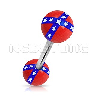 Piercing z chirurgickej ocele v kombinácii s bioplastom, piercing do jazyka. Priemer bioplastovej guličky: 6 mm, Hrúbka tyčky: 1,6 mm, Dĺžka tyčky: 16 mm.