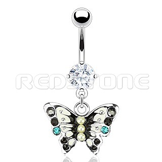 Piercing z chirurgickej ocele - banán, ostatné časti bižutéria. Rozmer: 18 x 37 mm. Hrúbka tyčky: 1,6 mm. Šperk z chirurgickej ocele v lesklom prevedení v kombinácii so zirkónmi, piercing do pupku.