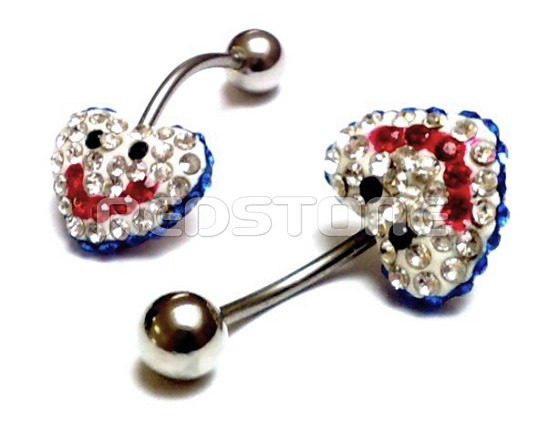 Piercing z chirurgickej ocele so zirkónmi, piercing do brucha. Rozmer: 12 x 24 mm, Šperk z chirurgickej ocele v lesklom prevedení.