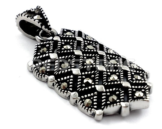 Prívesok z chirurgickej ocele. Rozmer prívesku: 18 x 33 mm. Šperk z chirurgickej ocele v kombinácii s markazitmi.