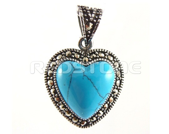Prívesok z chirurgickej ocele. Rozmer prívesku: 20 x 25 mm. Šperk z chirurgickej ocele v kombinácii s markazitmi a tyrkysom.
