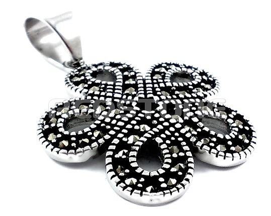 Prívesok z chirurgickej ocele. Rozmer prívesku: 28 x 33 mm. Šperk z chirurgickej ocele v kombinácii s markazitmi.
