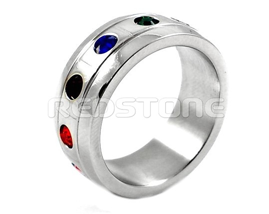 Prsteň z chirurgickej ocele. Šírka prsteňa: 9 mm. Šperk z chirurgickej ocele v lesklom prevedení v kombinácii so zirkónmi.