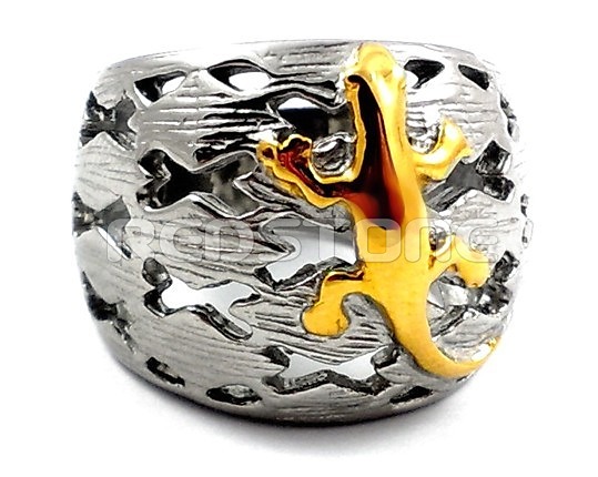 Prsteň z chirurgickej ocele s pozlátenou jaštericou. Šírka: 18 / 7 mm.