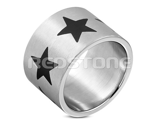 Mohutný pánsky prsteň z chirurgickej ocele s matným povrchom a čiernymi hviezdami Šírka: 15 mm