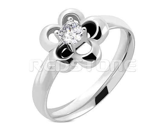 Elegantný prsteň z chirurgickej ocele s kvetom a zirkónom. Šírka prsteňa: 3 mm Rozmer kvetu: 12 x 12 mm