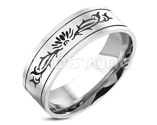 Prsteň z chirurgickej ocele s ornamentom, prsteň s matným povrchom. Šírka prsteňa: 8 mm
