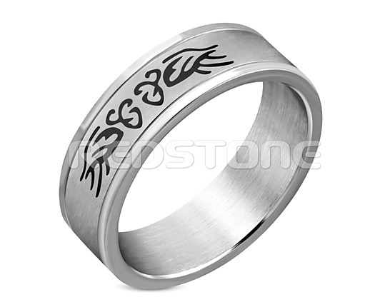 Prsteň s ornamentom kombinovaný s matnou a lesklou chirurgickou oceľou. Šírka prsteňa: 8 mm