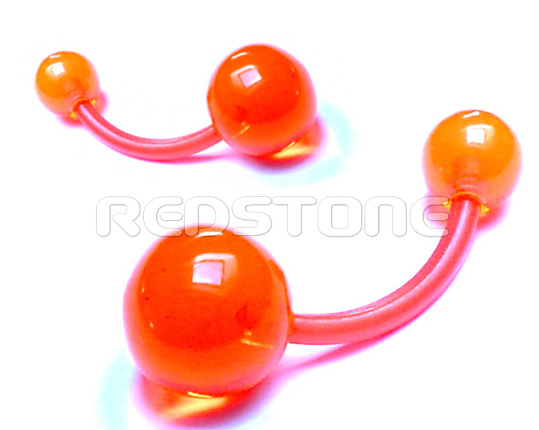 Pružný piercing z bioplastu s UV guličkami, piercing do pupku. Rozmer: 8 x 23 mm.