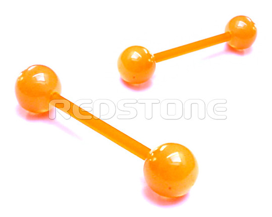 Pružný piercing z bioplastu, piercing do jazyka. Rozmer: 6 x 28 mm, Šírky tyčky: 1,5 mm. Farba: krikľavá oranžová.