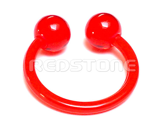 Piercing z pružného bioplastu, UV guličky. Priemer kruhu: 13 mm, Priemer guličky: 4 mm, Šírka tyčky: 1,2 mm.