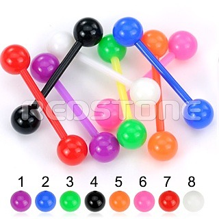 Pružný piercing - UV guličky, piercing do jazyka. Priemer guličky: 6 mm, Hrúbka tyčky: 1,6 mm, Dĺžka tyčky: 16 mm.