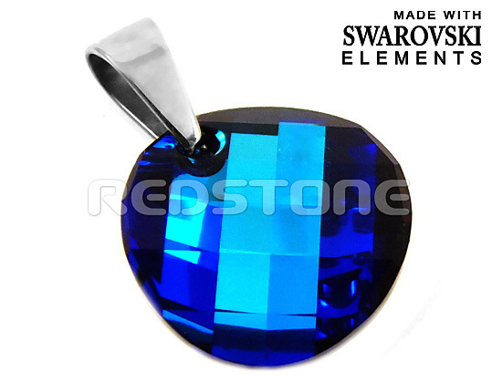 Prívesok z chirurgickej ocele v kombinácii so Swarovského krištáľom. Priemer prívesku: 18 mm. Swarovski krištáľ Twist vo farbe: Bermuda Blue.