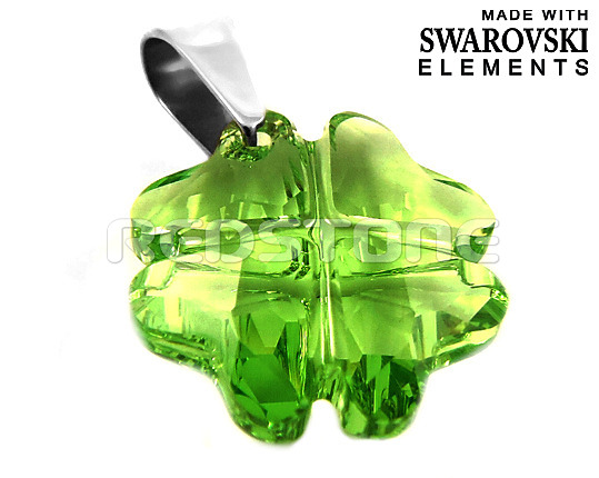 Prívesok - štvorlístok z chirurgickej ocele v kombinácii so Swarovského krištáľom. Rozmer krištáľu: 19 x 19 mm. Swarovski krištáľ Clover vo farbe: Peridot.