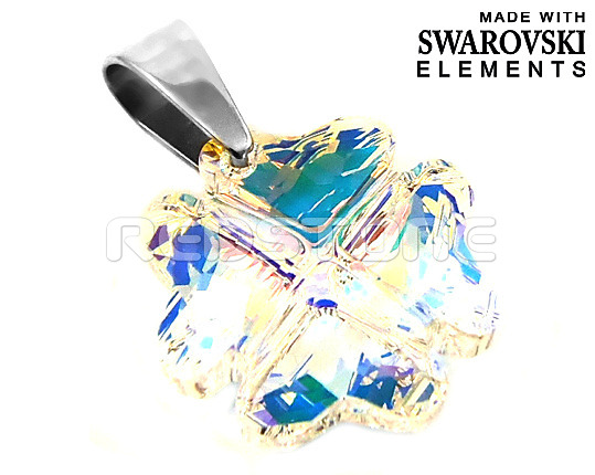Prívesok - štvorlístok z chirurgickej ocele v kombinácii so Swarovského krištáľom. Rozmer krištáľu: 19 x 19 mm. Swarovski krištáľ Clover vo farbe: Crystal AB.