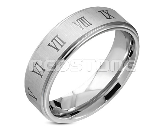 Prsteň kombinovaný s matnou a lesklou chirurgickou oceľou, na stredovej matnej časti prsteňa sú rímske číslice Šírka prsteňa: 7 mm