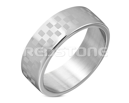 Lesklý prsteň z chirurgickej ocele so šachovnicovým vzorom Šírka: 8 mm