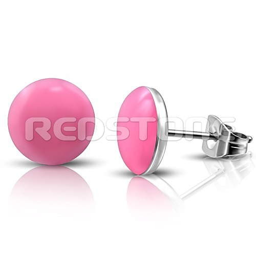 Puzetové náušnice z chirurgiickej ocele v ružovej farbe. Priemer náušníc: 7 mm.
