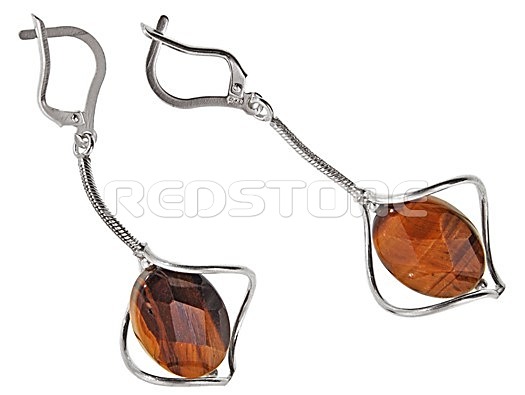 Strieborné náušnice. Hmotnosť: 8,2 g. Rozmer náušníc: 20 x 56 mm. Strieborný šperk v kombinácii s kameňom Tygrie oko.