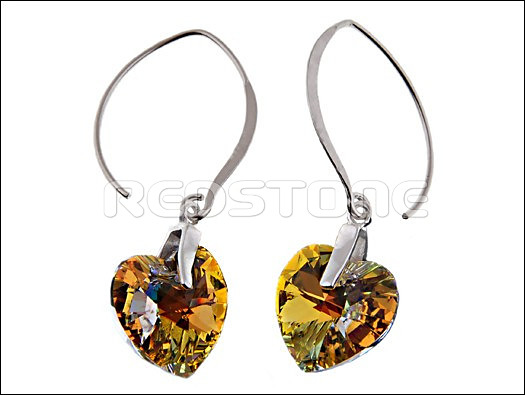 Strieborné náušnice. Celkový rozmer: 9 x 46 mm, Rozmer srdiečka: 9 x 9 mm, Hmotnosť: 4,5 g. Strieborný šperk s krištáľom.