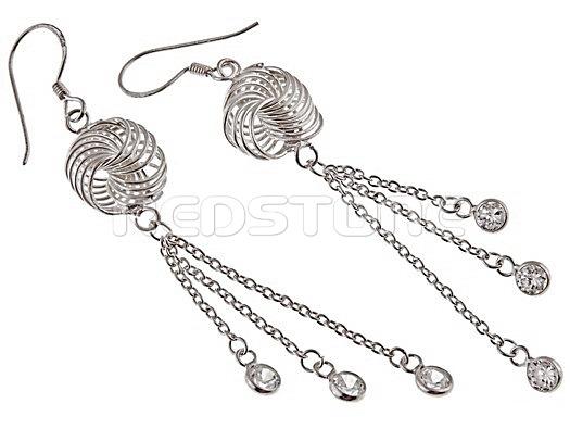Strieborné náušnice. Rozmer: 12 x 70 mm, Hmotnosť: 4,2 g. Strieborný šperk v kombinácii so zirkónmi.