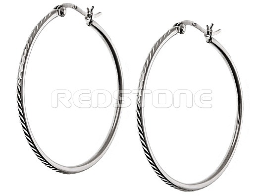 Strieborné náušnice. Priemer: 40 mm. Šírka: 2 mm. Hmotnosť: 4,4 g.