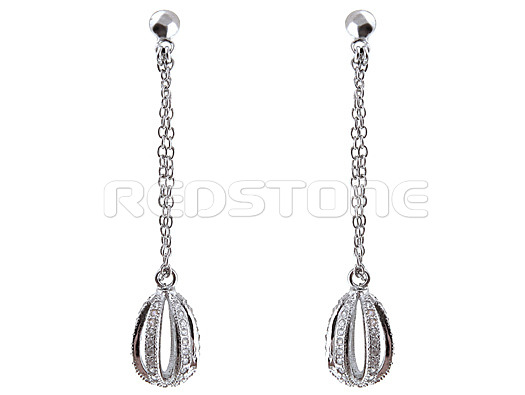 Rhodiované strieborné náušnice v kombinácii s mikro zirkónmi. Šírka: 9 mm. Dĺžka: 45 mm. Hmotnosť spolu: 3 g.