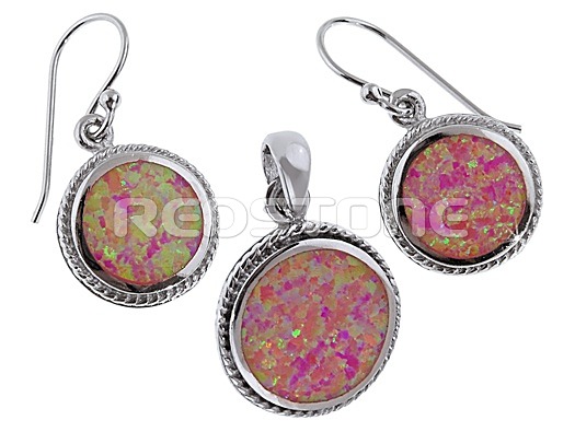 Sada strieborných šperkov - náušnice a prívesok. Hmotnosť spolu: 11,5 g. Rozmer náušníc: 15 x 18 mm - bez háčikov. Rozmer prívesku: 16 x 21 mm. Strieborné šperky v kombinácii s opálom.