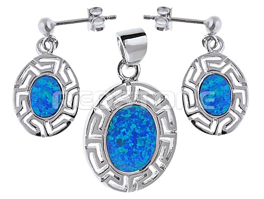 Sada strieborných šperkov - náušnice a prívesok. Hmotnosť spolu: 7,8 g. Rozmer náušníc: 13 x 18 mm. Rozmer prívesku: 19 x 26 mm. Strieborné šperky v kombinácii s opálom.