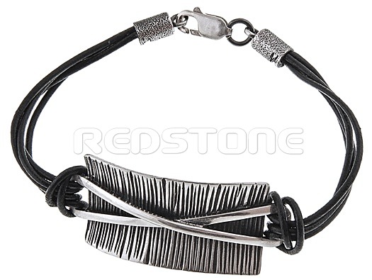 Strieborný náramok v kombinácii s kožou. Šírka: 20 / 5 mm. Dĺžka: 190 mm. Hmotnosť: 13,4 g.