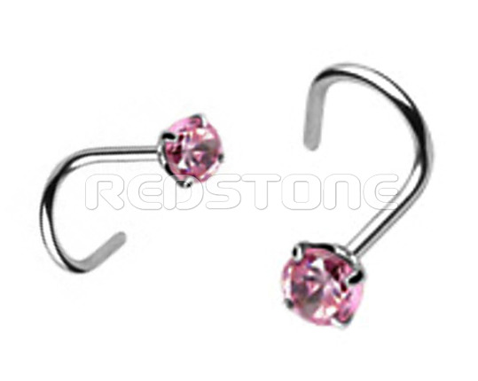 Strieborný piercing so zirkónom, Piercing do nosa, Priemer zirkónu: 3 mm, šírka tyčky: 0,7 mm,