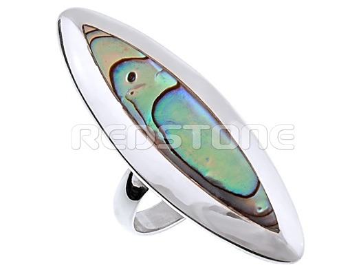 Strieborný prsteň. Hmotnosť: 4,8 g. Šírka prsteňa: 36 / 3 mm. Strieborný šperk v kombinácii s perleťou.
