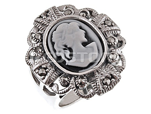 Strieborný prsteň. Hmotnosť: 8,8 g. Šírka prsteňa: 24/4 mm. Strieborný šperk v kombinácii s markazitmi.
