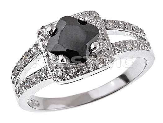 Rhodiovaný strieborný prsteň v kombinácii so zirkónmi. Šírka: 8 / 2 mm Hmotnosť prsteňa: 3,5 g