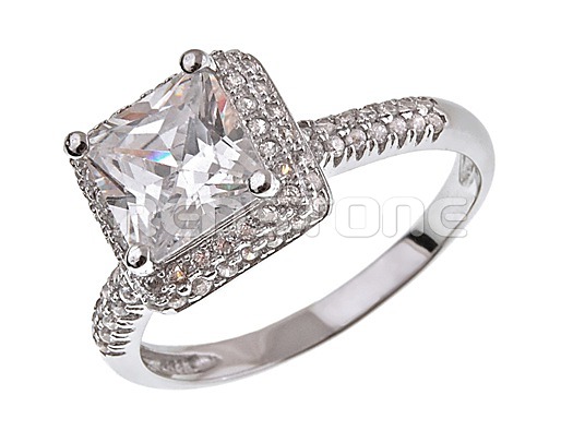 Rhodiovaný strieborný prsteň v kombinácii s mikrozirkónmi a zirkónom.