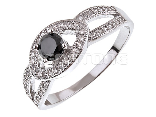 Rhodiovaný strieborný prsteň v kombinácii s mikro zirkónmi a zirkónom.