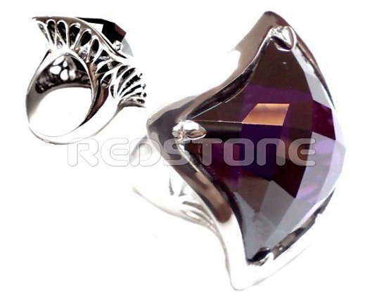 Strieborný rhodiovaný prsteň so zirkónmi, Hmotnosť: 27,3g, Šírka: 28/5 mm, exkluzívny strieborný prsteň vačších rozmerov a vačšou váhou, strieborný prsteň s fialovým zirkónom