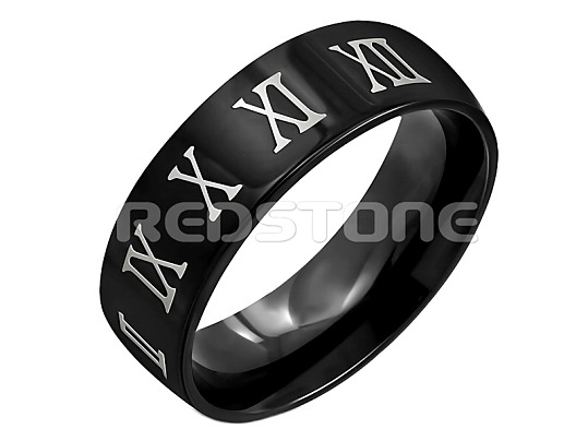 Prsteň z chirurgickej ocele v čiernom prevedení s rímskymi číslicami.